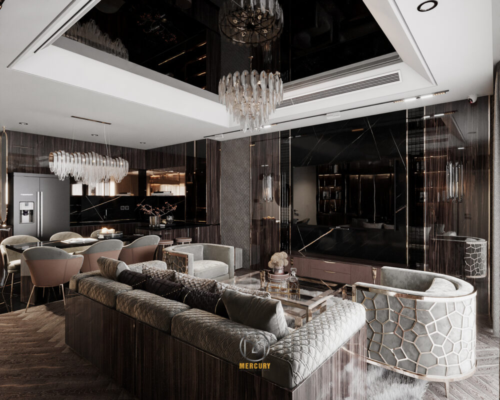 Đắm mình trong không gian nội thất luxury đầy cuốn hút với tone màu tối tuyệt đẹp. Từ sự kết hợp đầy tinh tế của đen, xám và vàng, không gian trở nên lịch lãm và ấm áp. Đồng thời với những chất liệu sang trọng như da, gương, inox và gỗ , mọi chi tiết đều phản ánh sự chăm chút tỉ mỉ và đẳng cấp.